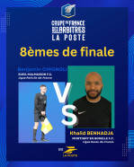 Le District Artois peut encore nourrir de belles ambitions avec la qualification de Khalid Benhadja, arbitre licencié au Montigny-en-Gohelle F.C., qui poursuit son parcours dans la compétition. Il représentera fièrement le territoire artésien lors des 8ᵉ de finale, où il sera opposé à Benjamin Chignoli.