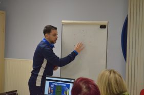 Les participants ont ensuite assisté à une séance des U18 Féminines du RC Lens, animée par Thibaut Baudart. Cette intervention a servis, de support d’observation et d’analyse, favorisant les échanges autour des choix pédagogiques et des situations proposées. La matinée s’est conclue par un temps d’échanges et de questions-réponses, permettant des discussions riches et constructives.