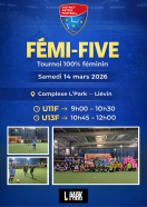 Le football féminin sera à l’honneur le samedi 14 mars 2026 à l’occasion du FEMI-FIVE, un événement annuel dédié aux jeunes joueuses des catégories U11F et U13F !
